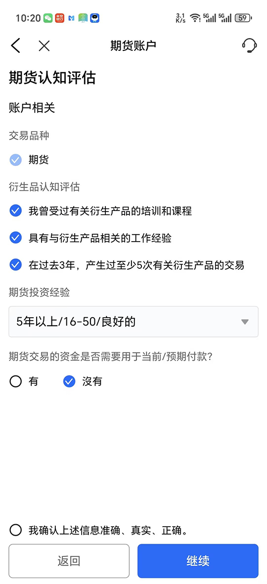 步骤3: 完成您的期货认知评估。