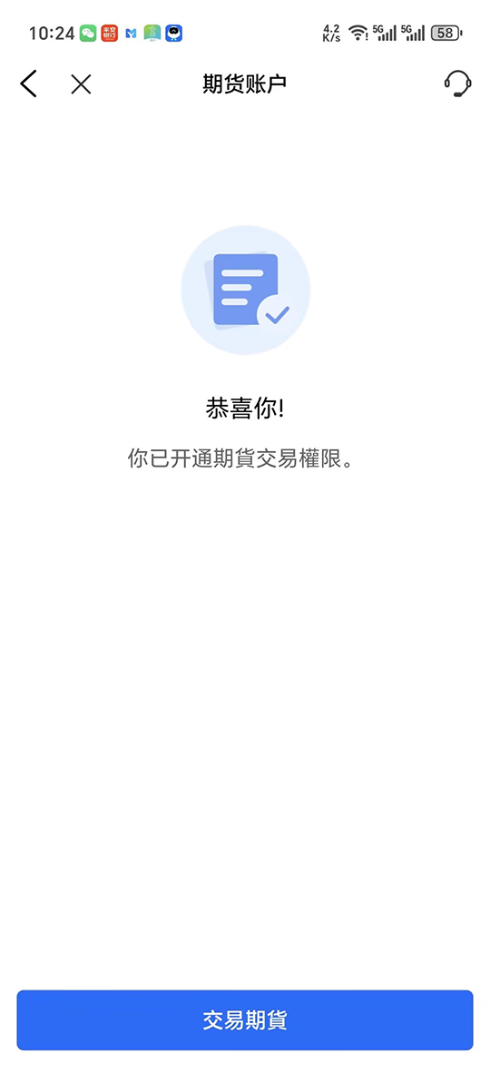 步骤6: 期货账户开通后,您会有以下的页面。